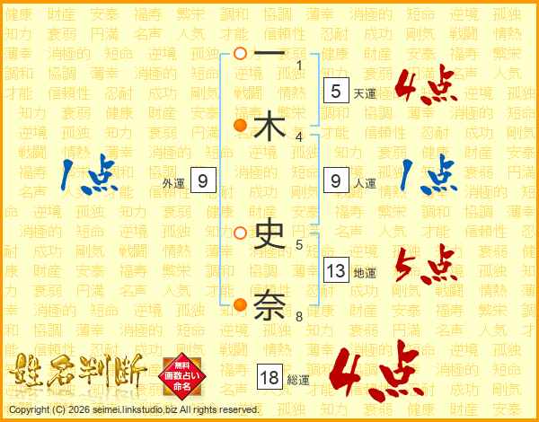 一(1画)木(4画) 史(5画)奈(8画)