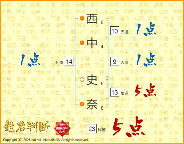 西中史奈さんの総運は23画の5点!