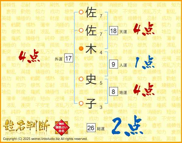 佐佐木史子さんの外運は17画の4点!