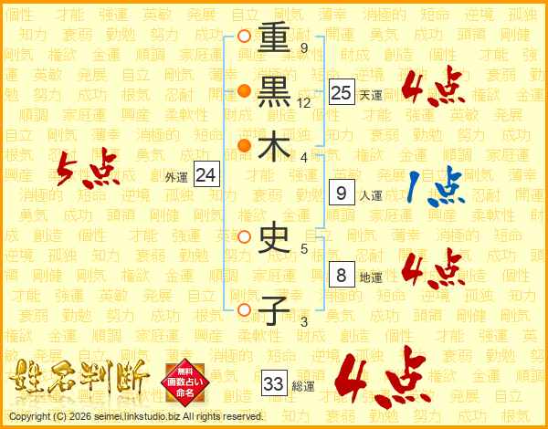 重黒木史子さんの総運は33画の4点!