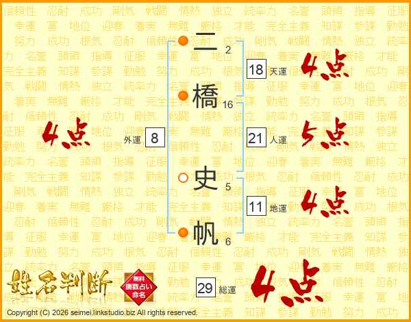 二橋史帆さんの総運は29画の4点!