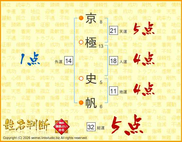 京(8画)極(13画) 史(5画)帆(6画)
