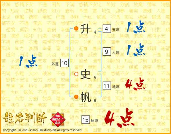 升史帆さんの総運は15画の4点!