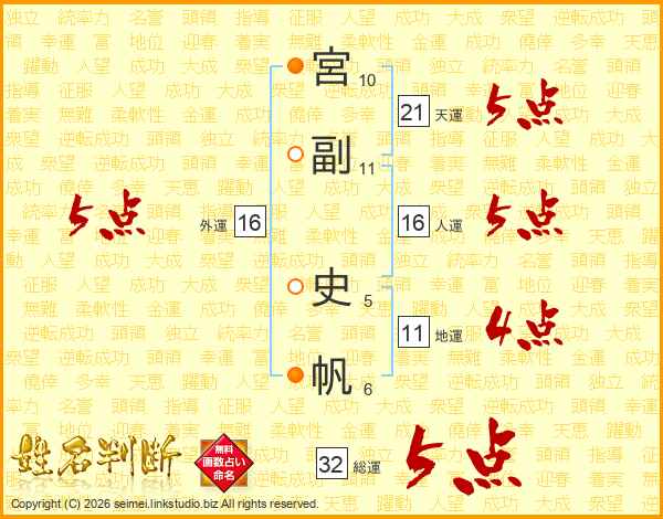 宮副史帆さんの総運は32画の5点!