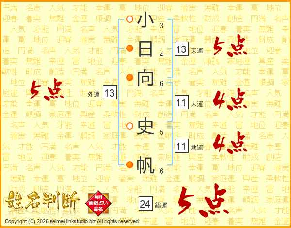 小日向史帆さんの総運は24画の5点!