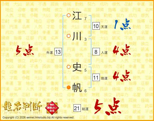 江川史帆さんの総運は21画の5点!
