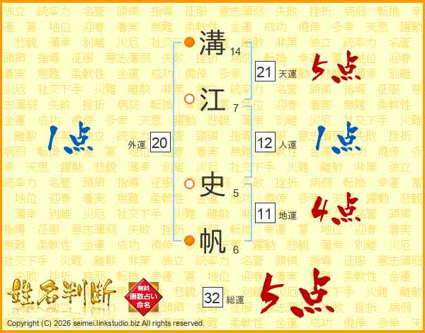 溝江史帆さんの総運は32画の5点!