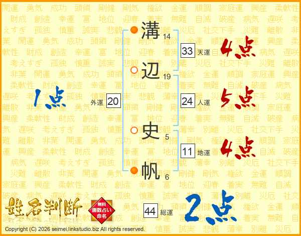 溝(14画)辺(19画) 史(5画)帆(6画)