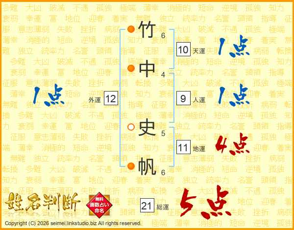 竹中史帆さんの総運は21画の5点!
