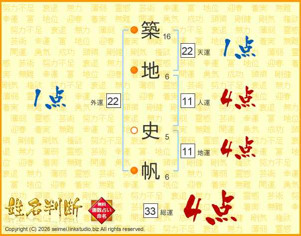 築地史帆さんの総運は33画の4点!