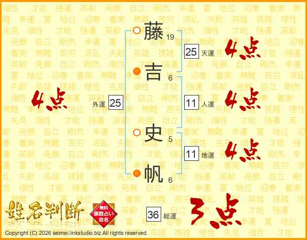 藤吉史帆さんの天運は25画の4点!