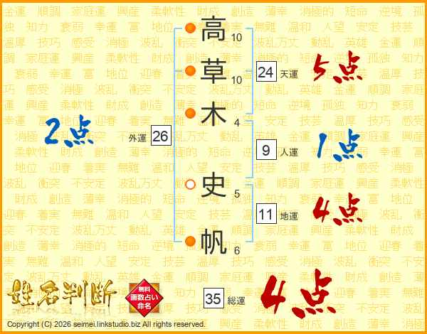 高(10画)草(10画)木(4画) 史(5画)帆(6画)