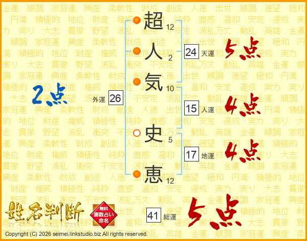 超人気史恵さんの天運は24画の5点!