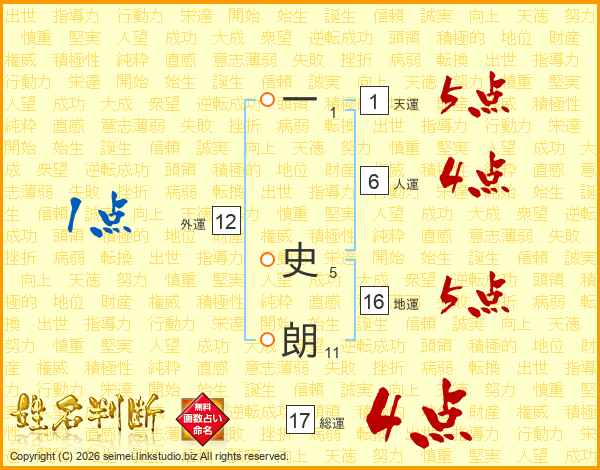 一史朗さんの総運は17画の4点!