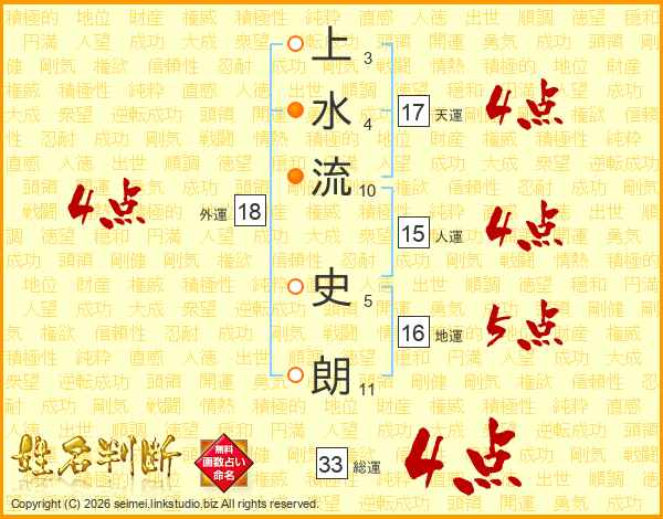 上水流史朗さんの総運は33画の4点!