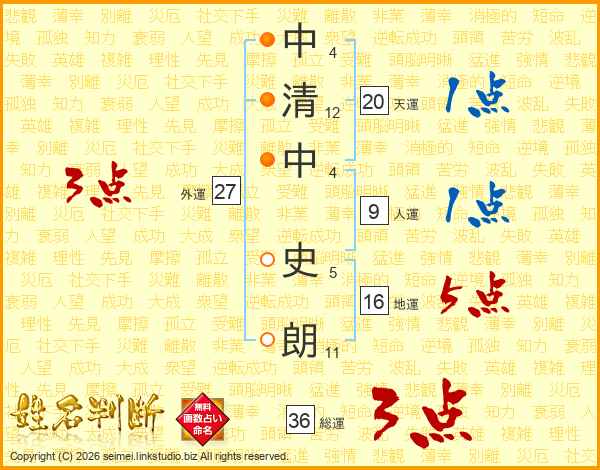 中清中史朗さんの総運は36画の3点!