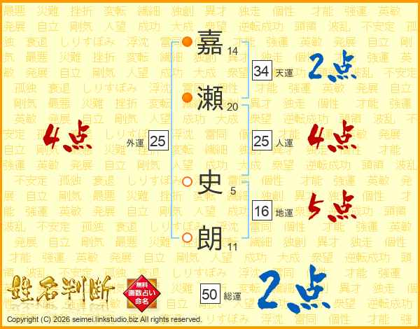嘉瀬史朗さんの人運は25画の4点!
