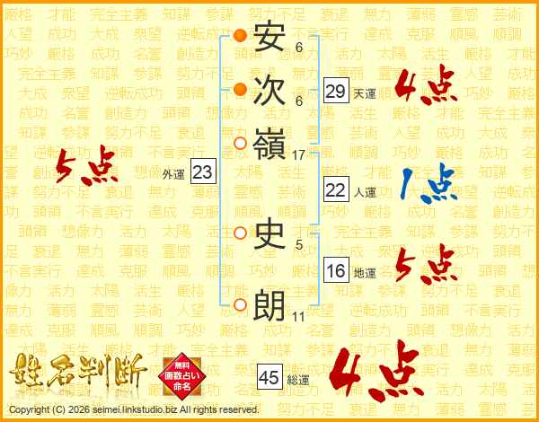 安次嶺史朗さんの総運は45画の4点!