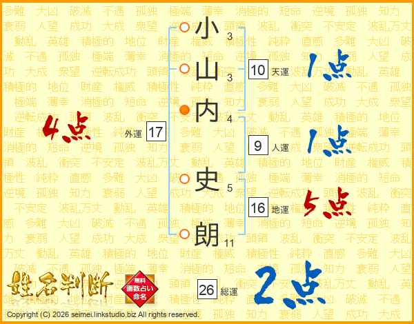 小山内史朗さんの外運は17画の4点!