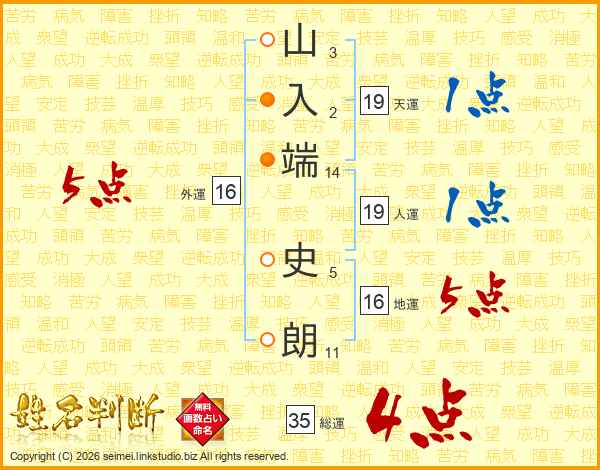 山(3画)入(2画)端(14画) 史(5画)朗(11画)
