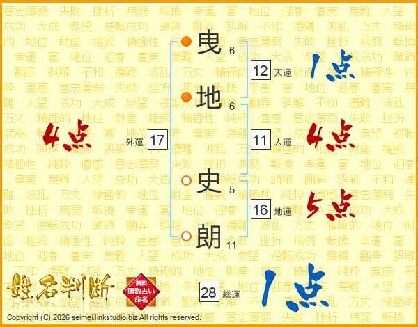 曳地史朗さんの人運は11画の4点!