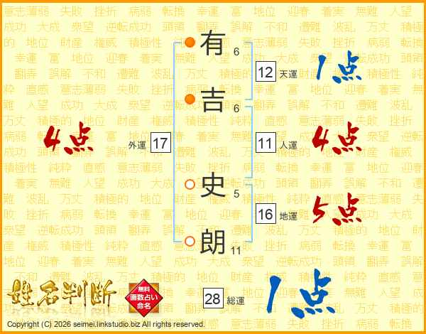 有吉史朗さんの総運は28画の1点!