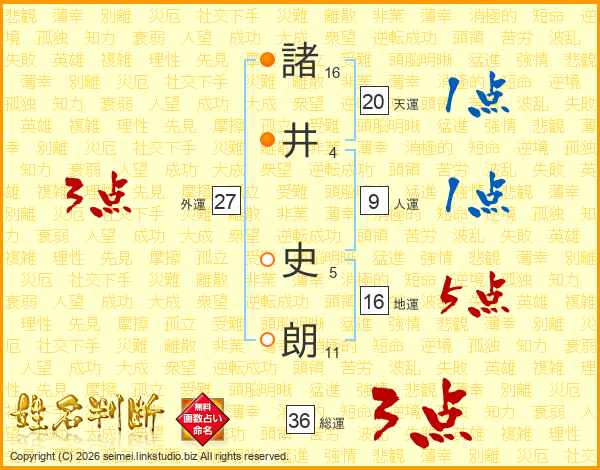 諸井史朗さんの総運は36画の3点!