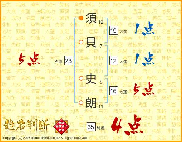 須貝史朗さんの総運は35画の4点!