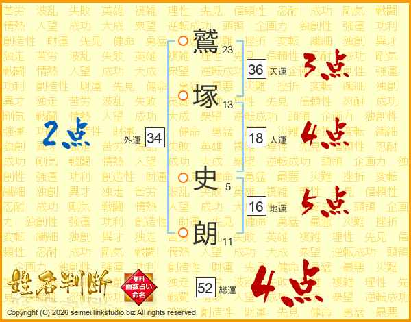 鷲塚史朗さんの総運は52画の4点!