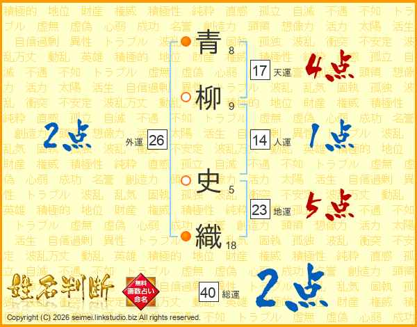 青柳史織さんの天運は17画の4点!