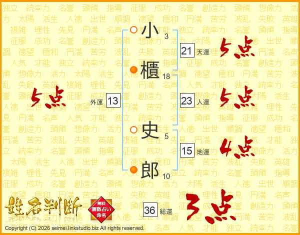 小櫃史郎さんの天運は21画の5点!