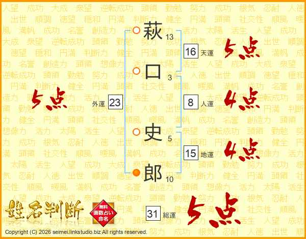 萩口史郎さんの総運は31画の5点!