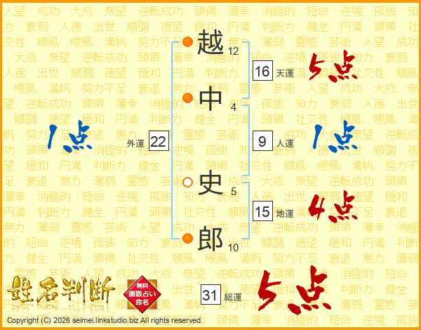 越中史郎さんの地運は15画の4点!