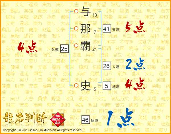 与那覇史さんの天運は41画の5点!
