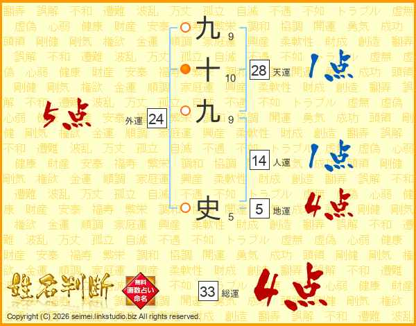 九十九史さんの総運は33画の4点!