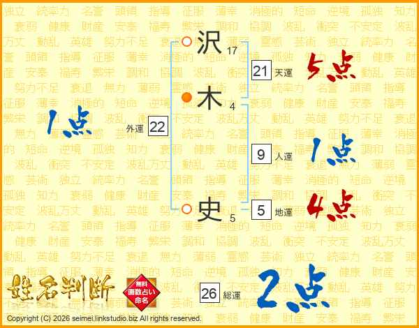 沢(17画)木(4画) 史(5画)