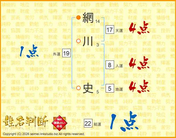 網川史さんの天運は17画の4点!