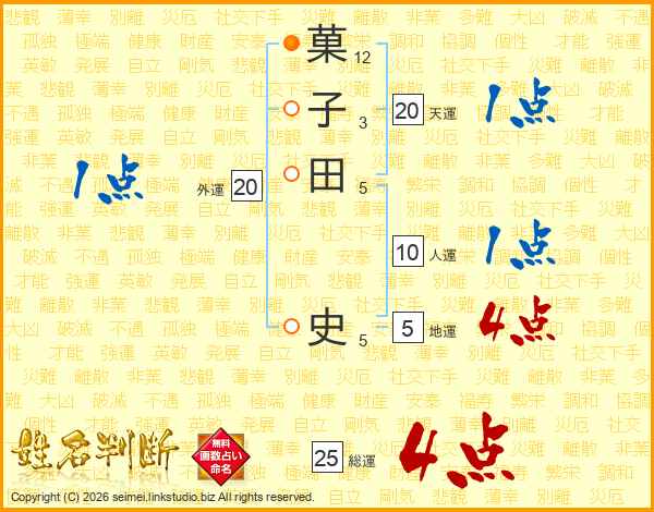 菓子田史さんの総運は25画の4点!