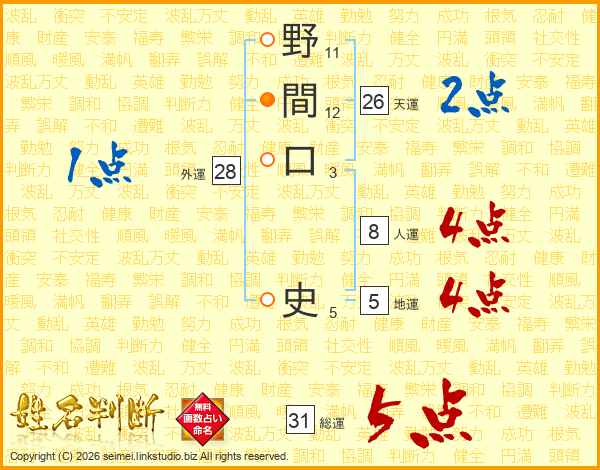 野間口史さんの総運は31画の5点!