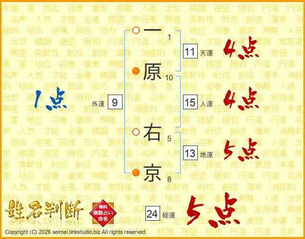 一原右京さんの総運は24画の5点!