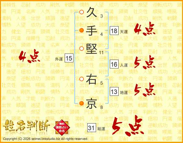 久手堅右京さんの総運は31画の5点!