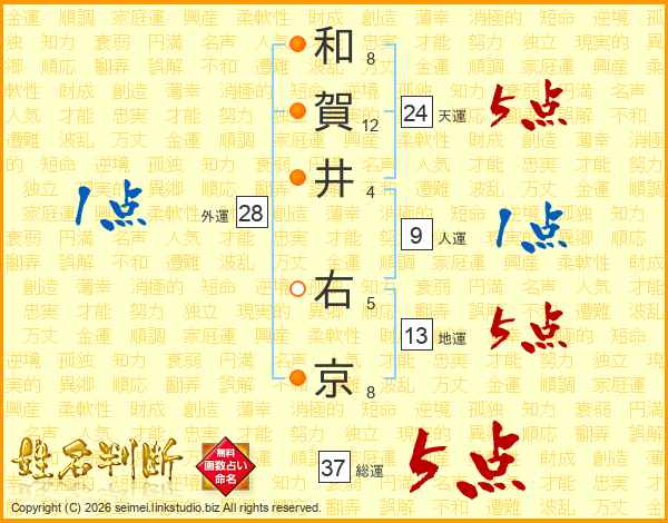 和(8画)賀(12画)井(4画) 右(5画)京(8画)