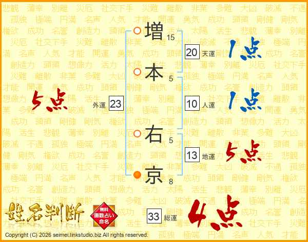 増本右京さんの総運は33画の4点!