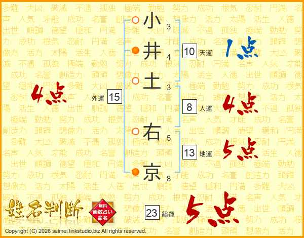 小井土右京さんの総運は23画の5点!