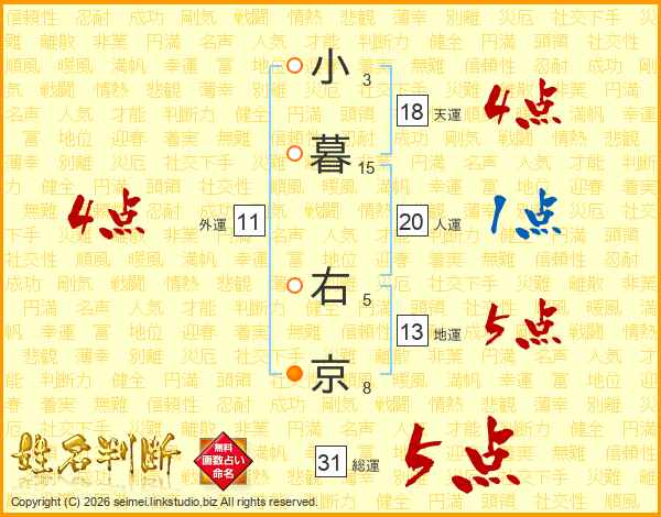 小暮右京さんの総運は31画の5点!
