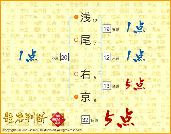 浅尾右京さんの総運は32画の5点!