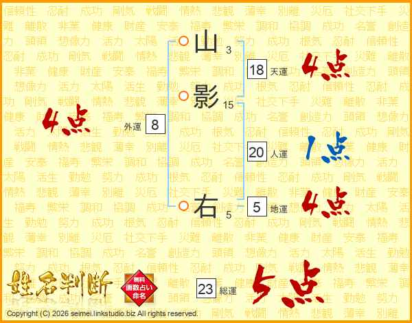 山影右さんの総運は23画の5点!