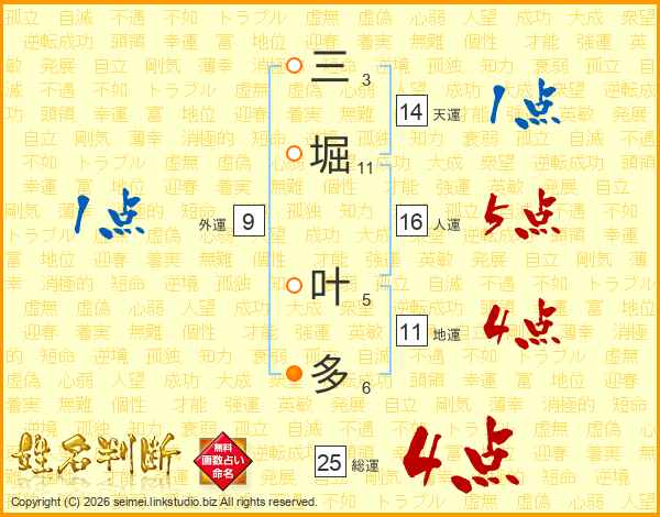 三堀叶多さんの総運は25画の4点!