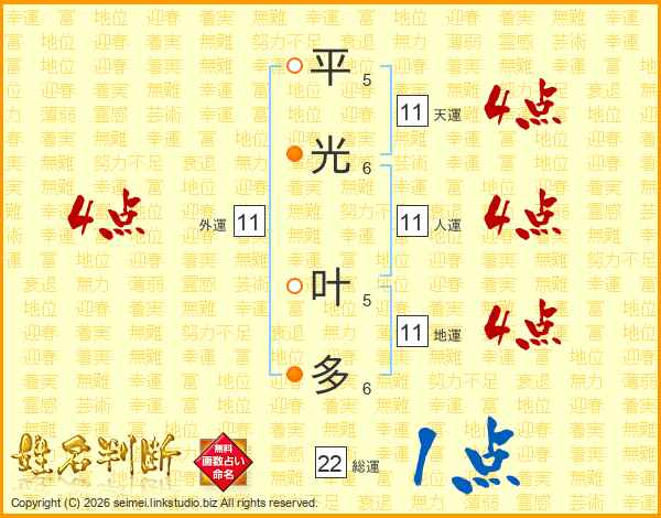平光叶多さんの人運は11画の4点!