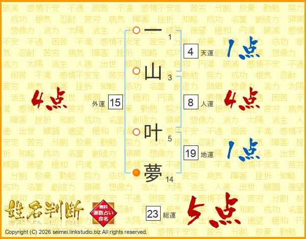 一山叶夢さんの外運は15画の4点!